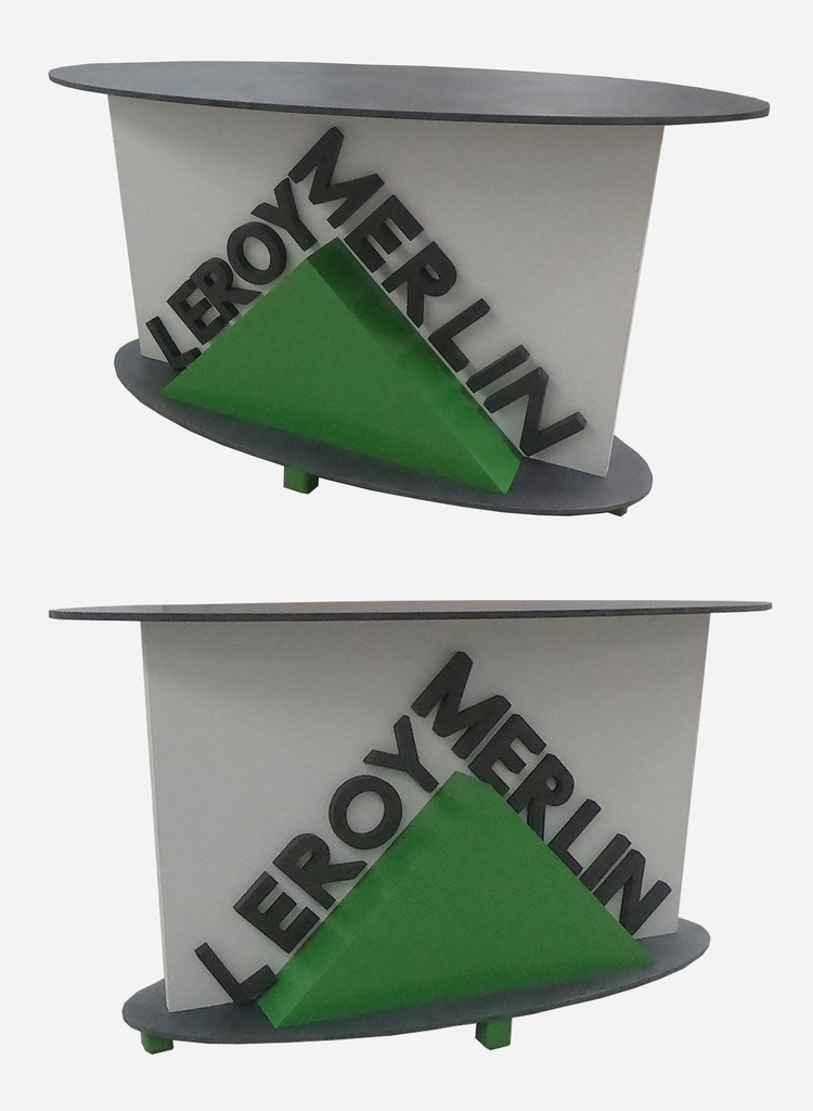 Banque d'accueil à l’effigie du magasin de bricolage. Dimensions Lxlxh : 1900x750x1100mm