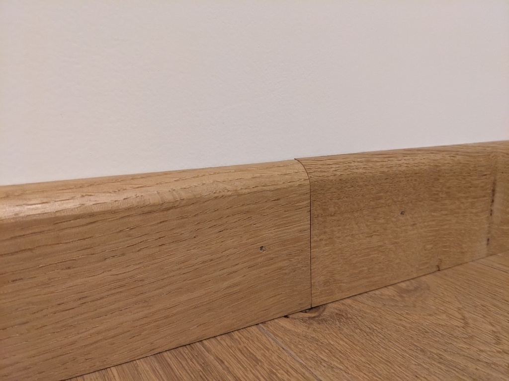 Chez moi les plinthes sont assemblées avec une coupe à 45 degrés, mais je ne sais pas ce qu'il faut faire réellement toujours est il que ce que tu as fait est très beau. Des plinthes en chêne massif....houa !!!!