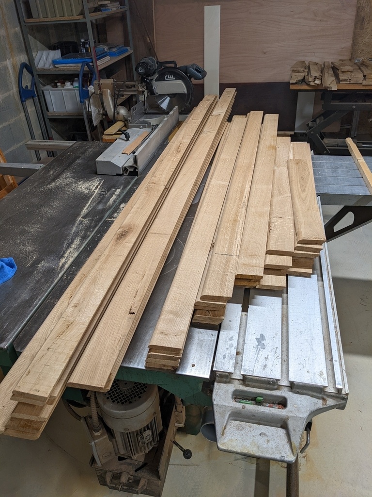 Pas facile de corroyer des bois de grandes longueurs, j'ai essayé de garder le maximum mais j'aurai dû couper pour ôter les défauts que je n'ai de toute façon pas gardé au final...