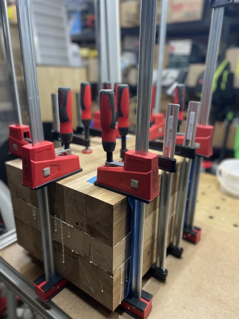 Pour répondre à la question de Neiru sur le collage: Sans collage le tout se disloquerait rapidement sous les vibrations de l'enclume. Un billot sèchera et subira inexorablement du retrait. Les forges sont sèches en été et très humide en hiver avec beaucoup de changement de température et d'hygrométrie. Le cerclage le plus serré possible est impératif. Vernir ou cirer le bois permet d'attenuer la sensibilité aux changements d'hygrometrie. Dernier conseil, une barrière à l'humidité (vernis, cire, goudron...) est impérative sous la base parce que le sol des forges est souvent humide en hiver.