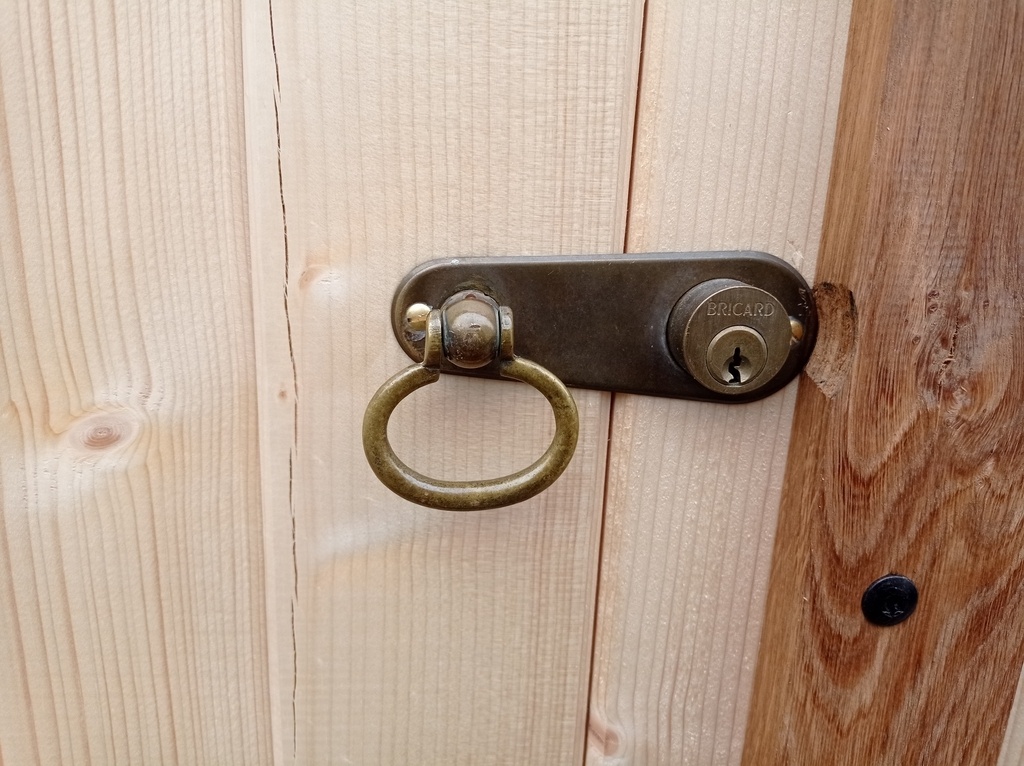Désolé, non je n'ai pas de référence pour la quincaillerie, tout a été récupéré sur l'ancienne porte.