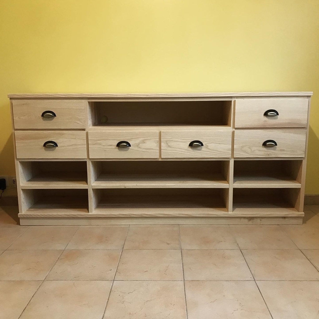 6 tiroirs et 7 niches pour ce buffet en frêne massif.