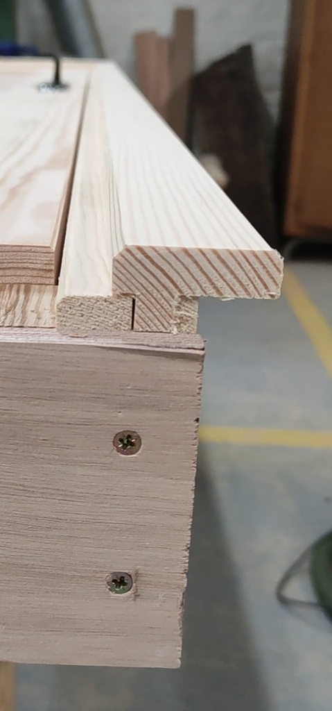 J'ai réalisé une rainure dans le bâti pour la finition extérieure elle viendra se caler dedans lors de la pose.