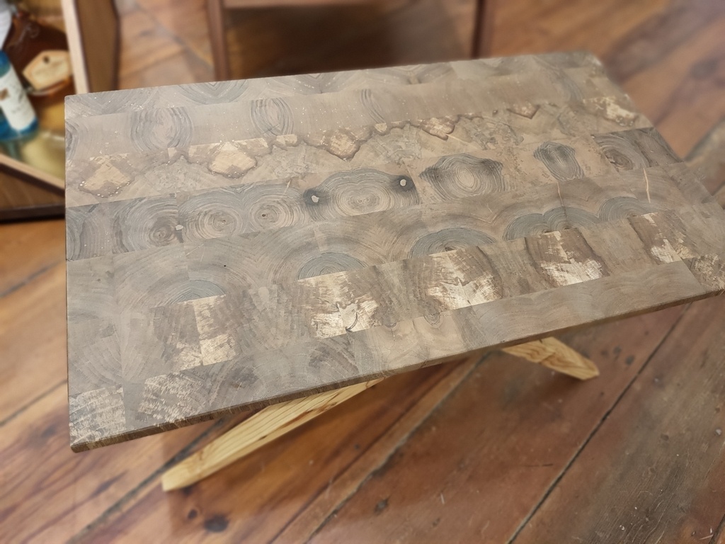 Salut et merci ! Pour le fléchissement on verra, en tout cas ça ne sera pas au niveau de l'assemblage, enfourchement plus chevilles ça devrait le faire , après elle n'est pas immense 75x45 cm , mais le plateau paise un peu quand même. Je l'ai vraiment conçue comme petite table d'appoint pour chiller avec un bon wisky et un gros barreau de chaise ...