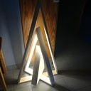 Le pied est réalisé à partir d'un reste de planche de parquet. Découpée puis cintrée autour d'une boîte de conserve. Ensuite je l'ai compartimenté avec du béton dans la partie basse et l'électronique des led dans la partie haute.