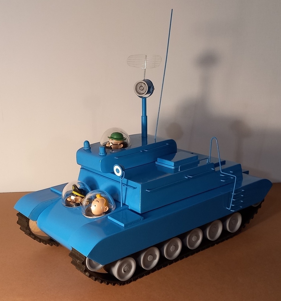 Après la fusée, le sous-marin, l'hydravion, voilà le char lunaire de tintin dans "On a marché sur a Lune".