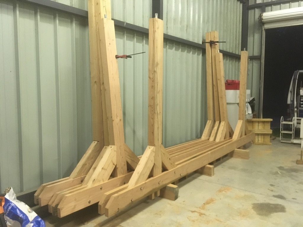 - La conception rigide ne permet pas d'ajuster facilement la verticalité de chaque poteau, cela aurait donc mérité un plus d'attention au moment de la taille des fermes.