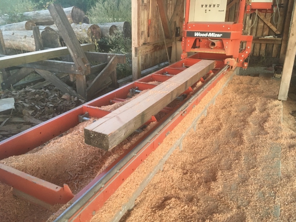 En complément du tri minutieux des poutres plus ou moins vrillées par le séchage, le choix à été fait de raboté la totalité du bois, l'état de surface est ainsi plus jolie mais surtout on gagne en précision pour faciliter la taille. Cela fait partie des taches pour lesquels notre rabot sur rail est très adapté :