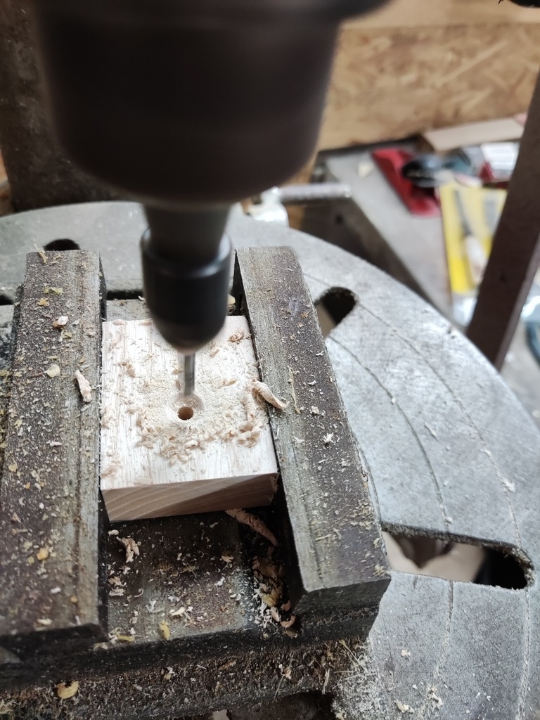 L'usinage des mortaises a été réalisé avec la mortaiseuse en bout d'arbre avec une mèche de 12mm. Pour les tenons, avec un outil à tenonner monté sur la toupie.