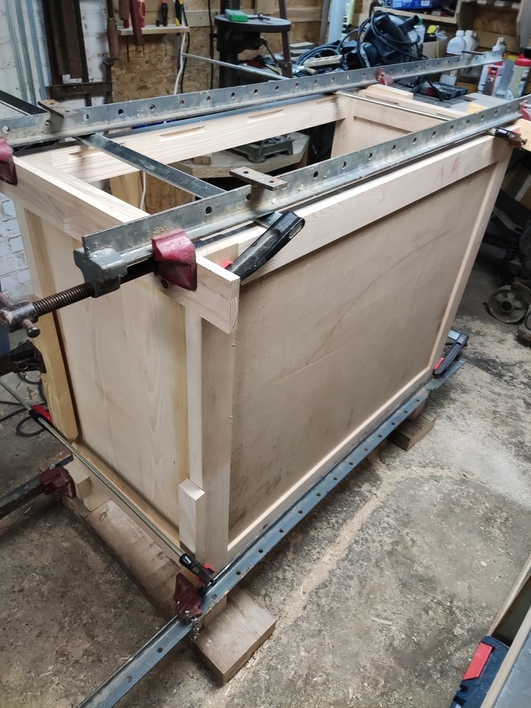 Les assemblages de la structure du meuble sont dans l'ensemble bons mais j'ai quelques désaffleurs par ci par la... Ma machine n'est plus toute neuve et l'opérateur n'est pas un pro ! Ce sera rattrapé au ponçage.