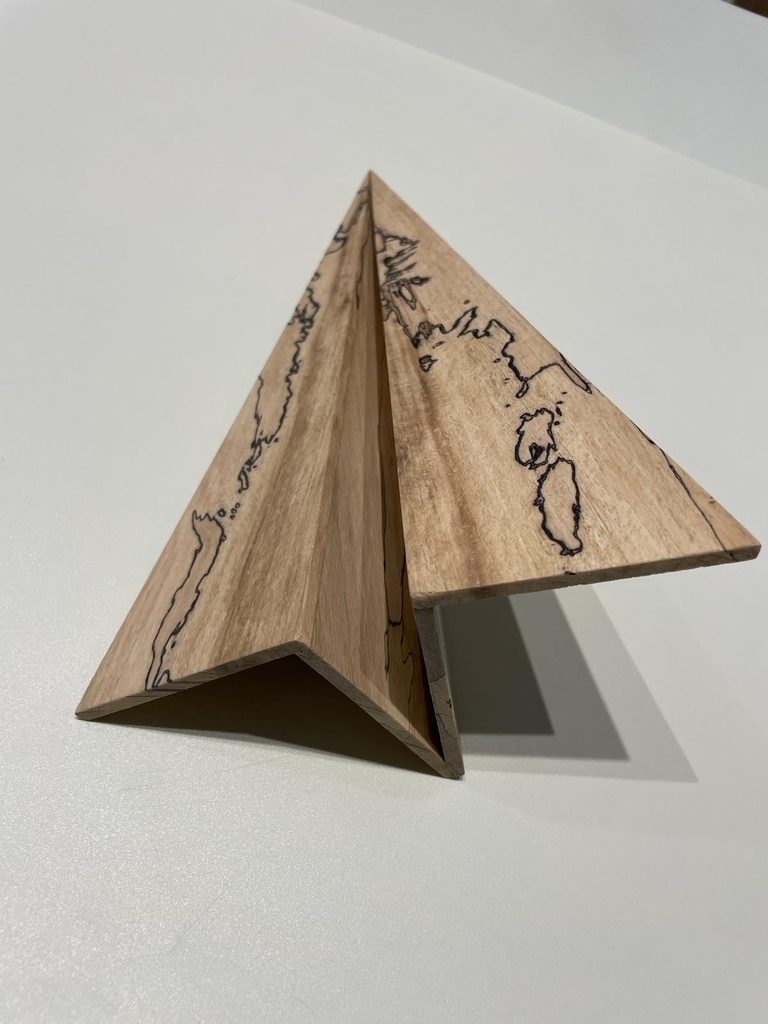 c’est pas très compliqué: 2 planchette de 7cm X 28cm épaisseur 5mm. tu coupes en triangles identiques. tu tailles l’angle à 12degres et tu colles d’abord à 90 degrés les ailles puis à la fin tu colles l’angle du bas.