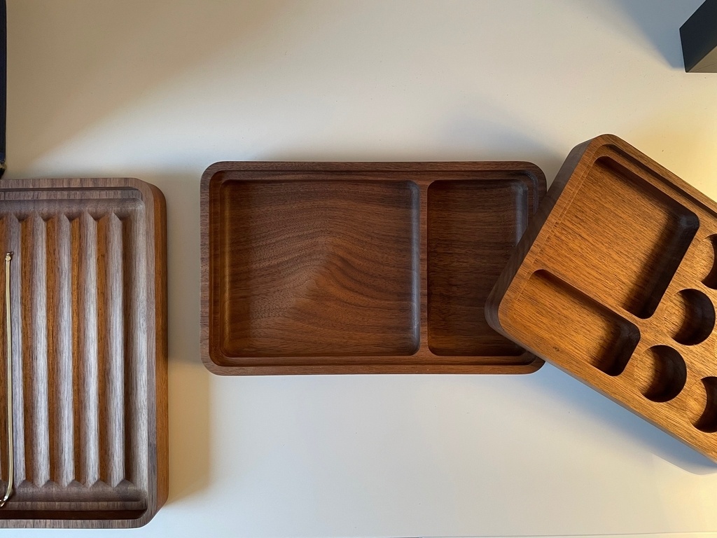 Merci. Je ne suis pas tout à fait sur de comprendre de quels racords dans les angles tu parles. Chacun des 3 plateau provient de la même pièce de noyer, donc le grain est similaire