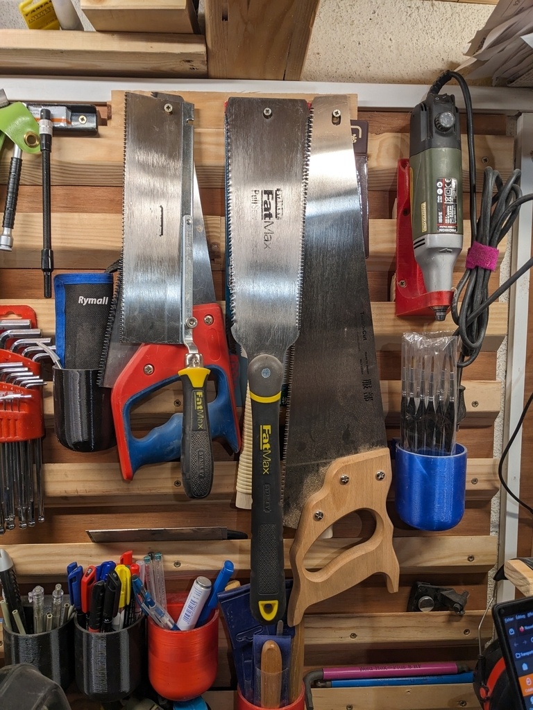 Ah mais oui mais c'est génial ! Ça prendra plus de place que mon clou sur lequel j'empile mes scies, mais je ne me les prendrai plus sur la g***** quand je voudrai prendre celle qui sert le moins souvent !