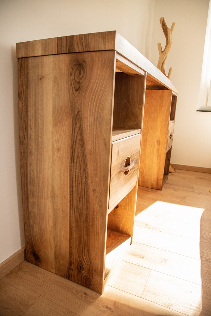 En tout cas, ça lui a plu et elle m'a demandé si je prenais des commandes et si oui, s'il y avait un moyen de fabriquer un autre bureau et surtout avec le même bois.