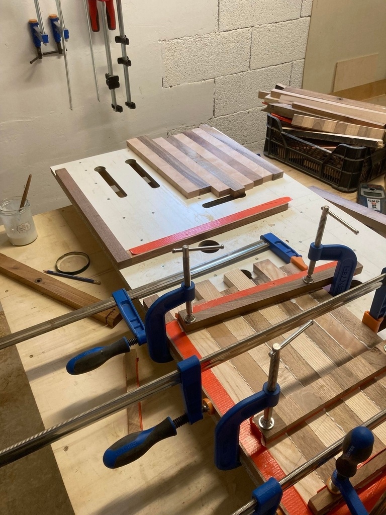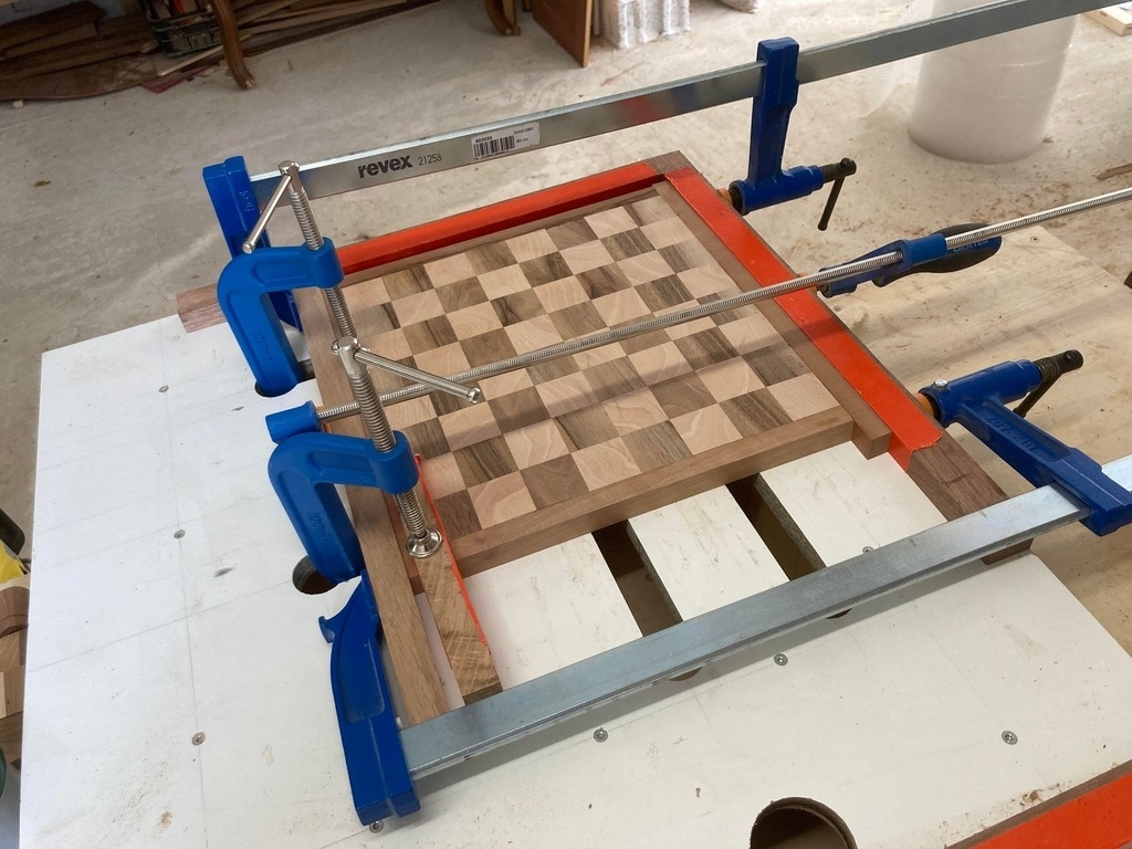 une fabrication industrielle deux par deux d'échiquier grâce à "la table d'assemblage" de notre bon vieux "workshop companion". je vous mets le lien : youtube.com/wa...h?v=1ujUF5skCzI