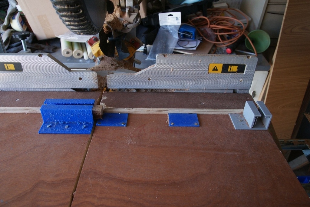 Pour créer les différents gabarits, il serait possible de les imprimer mais le plus simple est d'utiliser des chutes de bois. Mettre le tube, la cale de jeu et la chute de bois en appui sur la cale de blocage, sciez et vous optenez un gabarit à la dimension souhaitée.