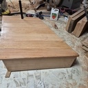 Voici une estrade qui m'a été demandée pour remplacer celle d'un autel qui avait fait son temps et qui était complètement délabrée. Mon beau-frère, restaurateur en oeuvre d'art, qui m'a demandé de la réaliser, avait exigé qu'il n'y ait aucune vis. L'assemblage est donc uniquement collé et chevillé.