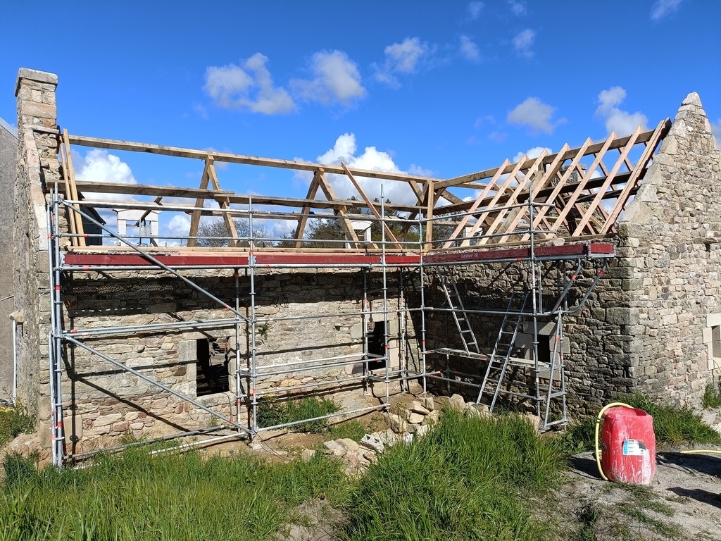 Que c'est beau! Je ne pensais pas qu'on pouvait faire de la belle charpente à l'ancienne autrement que sur du grand bâtiment patrimonial... Pourtant le bâtiment à l'air relativement petit... C'est un particulier?