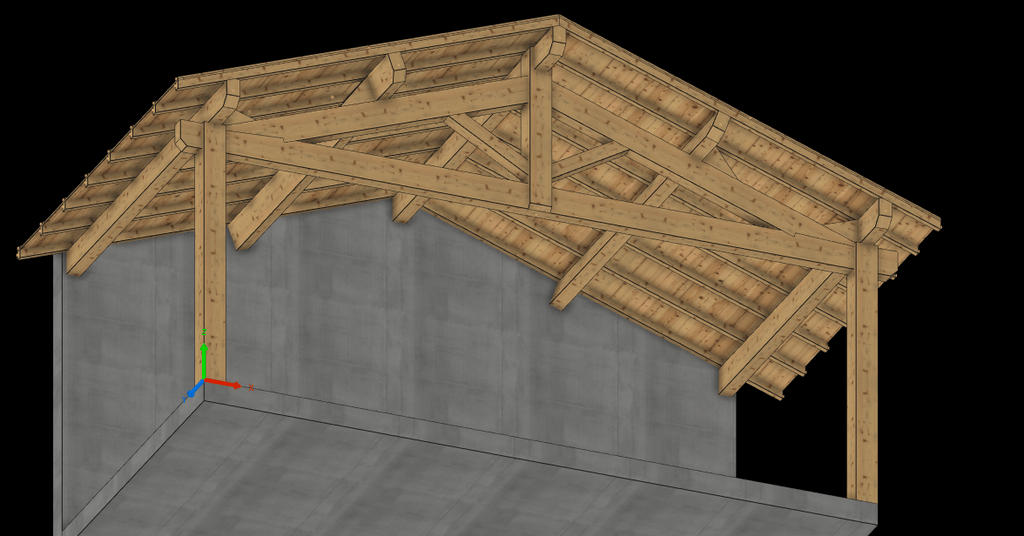 Assemblage des arbalétrier en pied avec un double vitrage embrèvement et en tête avec un embrèvement en gorge dans le poinçon.