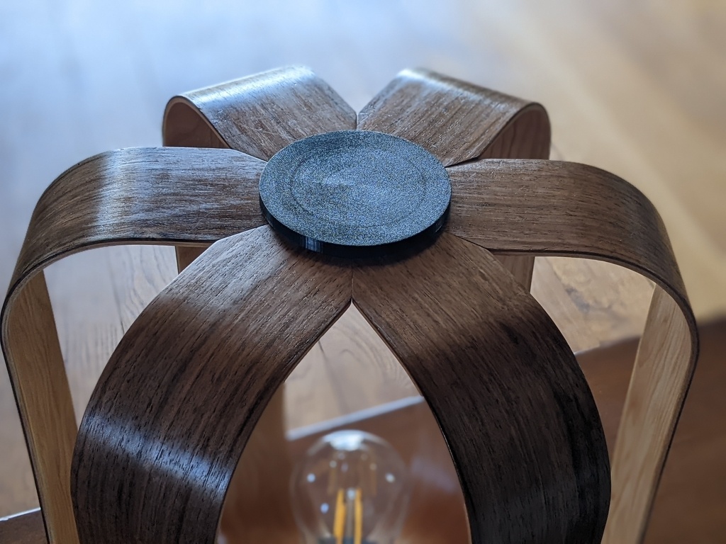 Une première création lamellée collée cintrée en guise de test de ma ponceuse calibreuse montée sur tour à bois.