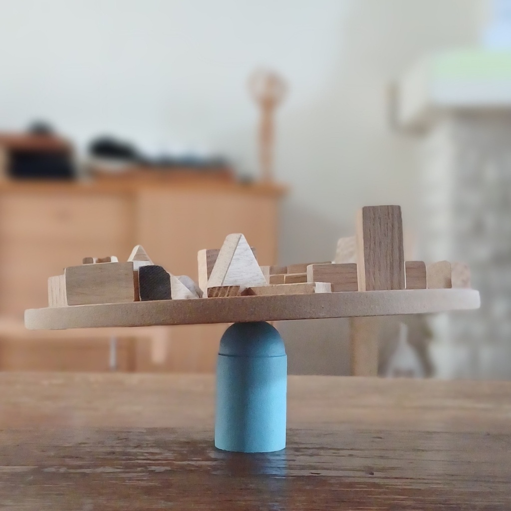 On pose toutes les chutes au hasard sur le plateau, on passe une dizaine de secondes à équilibrer le tout sur le support, puis on retire les pièces à tour de rôle.