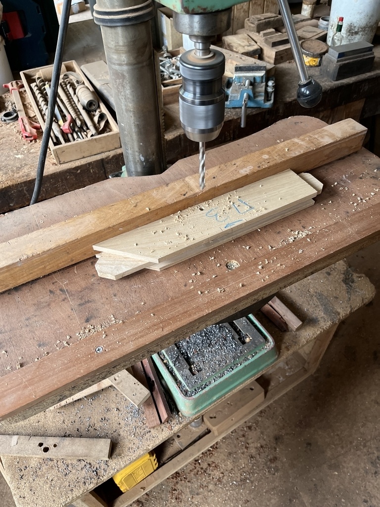 J’ai pré percé les mortaises et j’ai ensuite percé le tenon avec la mortaise quand c’était assemblé à la cadreuse.