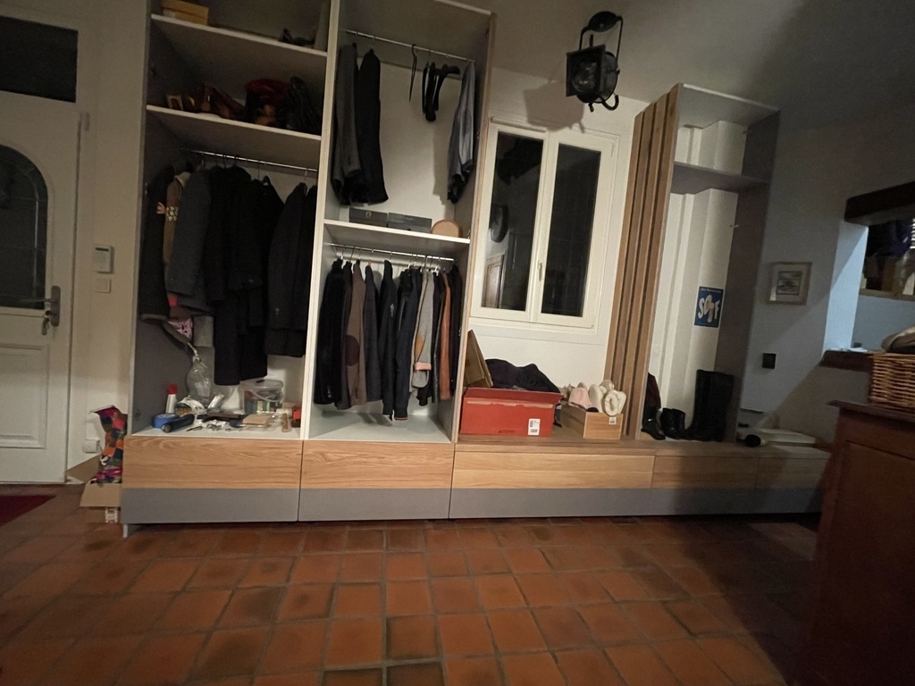 - une colonne de rangement sur caisson tiroir, cette colonne cache une gaine technique