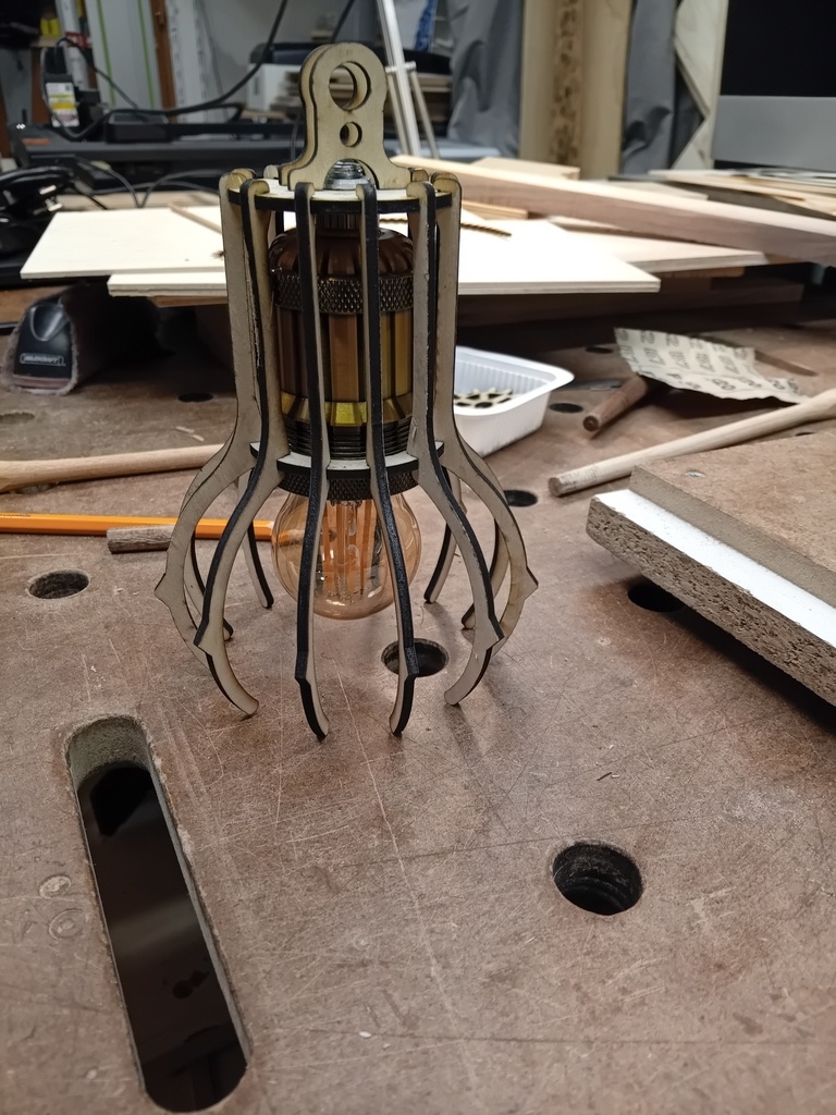 J'ai déjà eu pas mal de souci sur la découpe de CP, notamment du CP de pin ou systématiquement j'avais la dernière couche qui faisait de la résistance. Et il se trouve que dans l épaisseur voulu j'avais rien d'autre et pas envie de commander. Ceci dit c'est une lampe, donc y'a pas non plus des efforts de dingues dessus donc ça devrait tenir... enfin j'espère