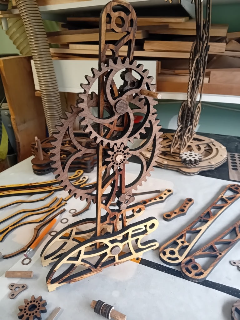 J'avoue avoir fait un peu de benchmarking pour le mécanisme à roues dentées, j'ai observé comment était foutu quelques modèles (merci Pinterest) et je me suis lancé.