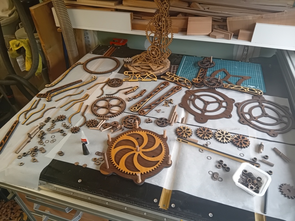 Le gros des pièces sont découpées aux laser. J'ai upgradé ma graveuse laser avec une tête de 20W qui m'a été fort utile pour ce projet.