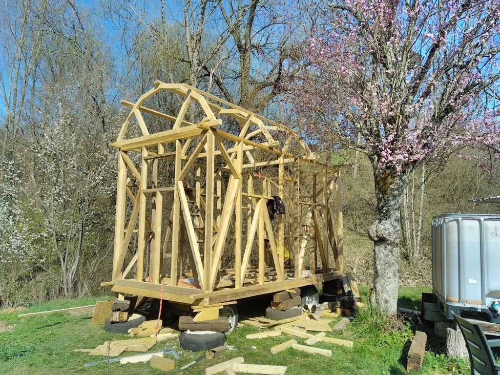 La roulotte est en réalité une "fausse", elle n'aura pas vocation a être déplacé de plus de quelques mètres pour optimiser son implantation.