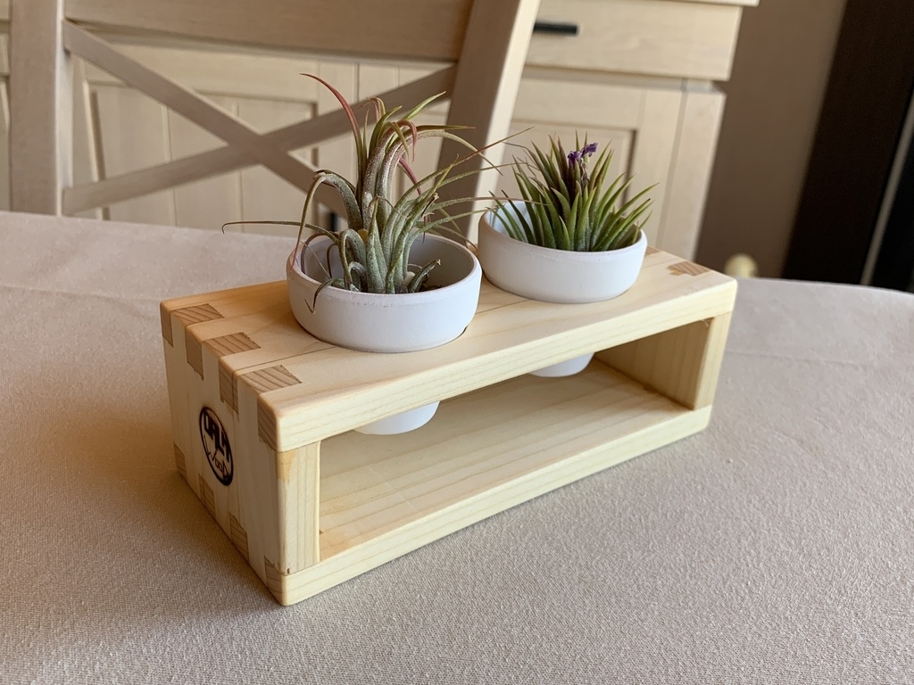 Fabrication de 2 supports pour « air plantes ». La réalisation des queues droites pour les assemblages est assez technique. Comme c’était mon premier essai, j’ai préféré réaliser ce bricolage en sapin. J’ai rencontré beaucoup de difficultés et dû corriger plusieurs petits défauts; mais je suis assez fier du résultat final. Je vais certainement les refaire en chêne dans les prochains mois