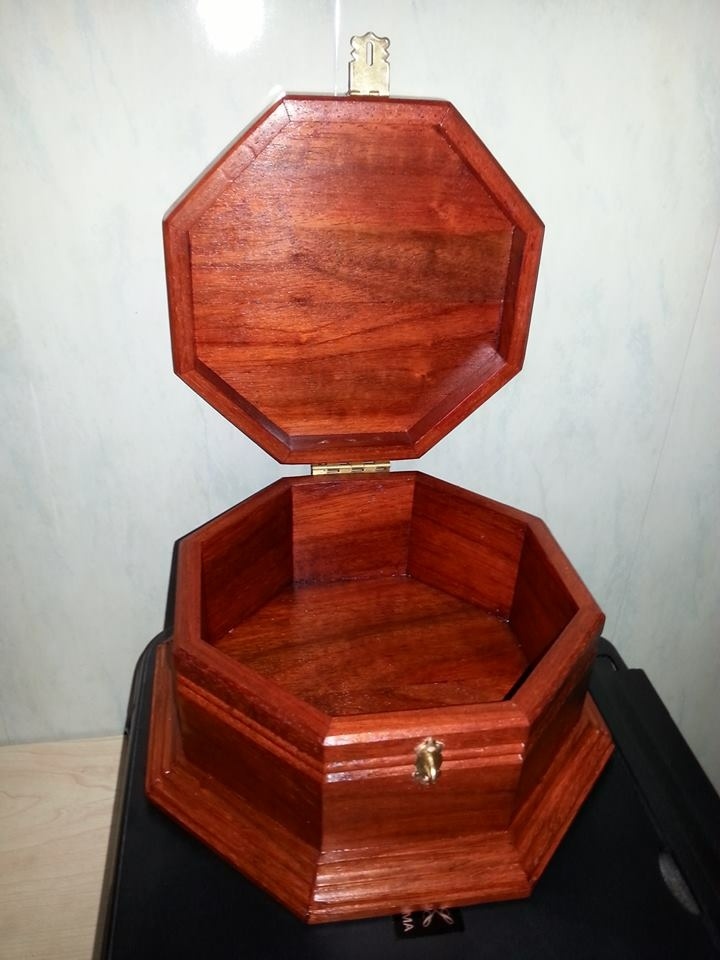 Petit coffret réalisé en Padouk. Pas mal de petit défaut sur ce coffret et La finition laisse à désiré, je suis obligé de le reconnaître ;)