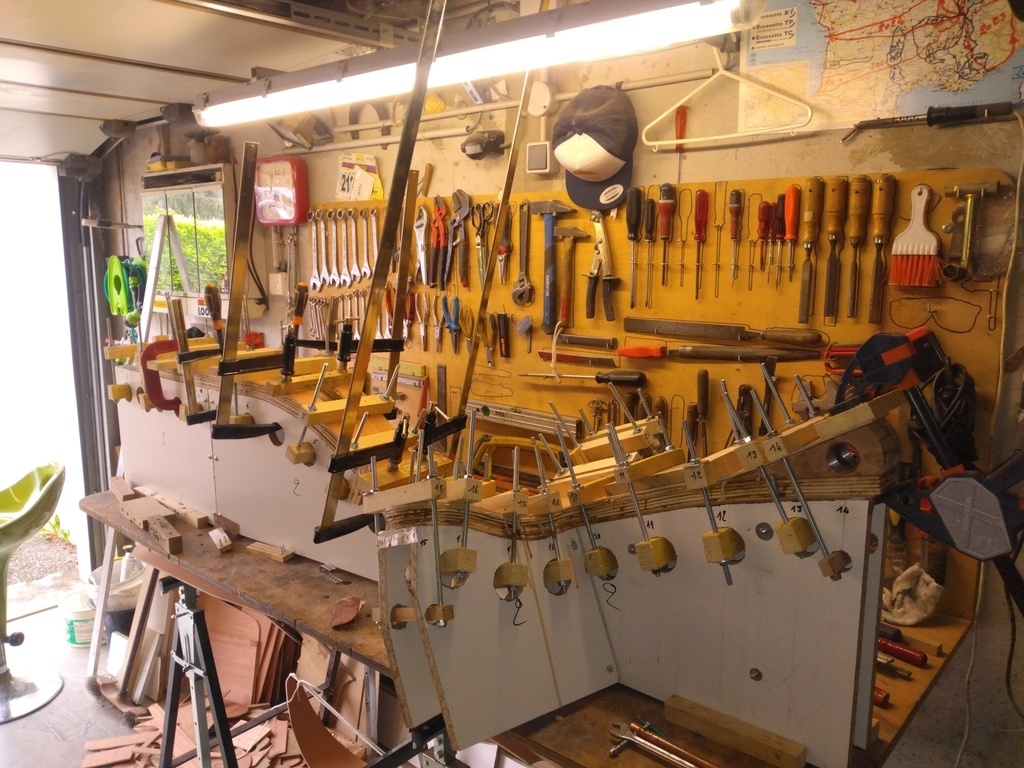 Réalisez en contreplaqué de 5 mm cintré et collé sur des formes prédéfinies.