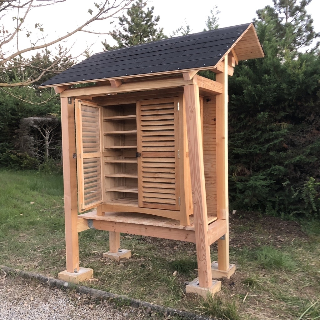 Les contraintes étaient que le meuble soit abrité de la pluie, qu'il soit ventilé et étanche aux insectes.