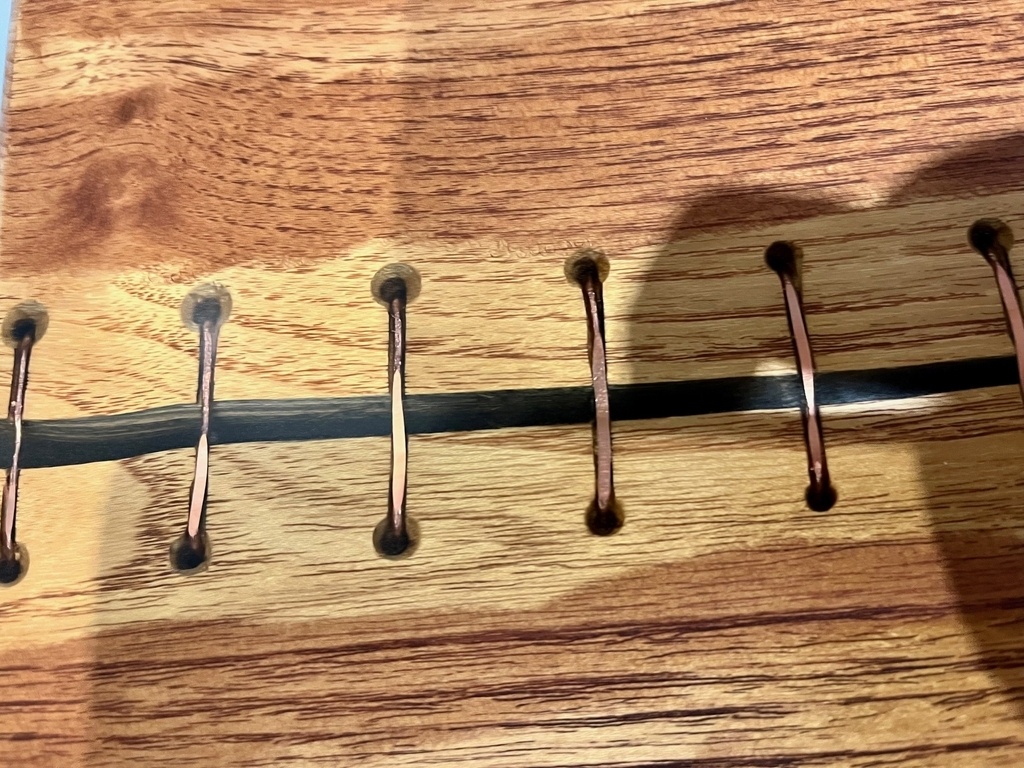 Du coup, je me suis lancé dans une opération de chirurgie sylvestre en appliquant des points de suture. Ceux-ci sont réalisés grâce à du fil de cuivre de 2.5mm², extrait d'un câble électrique.