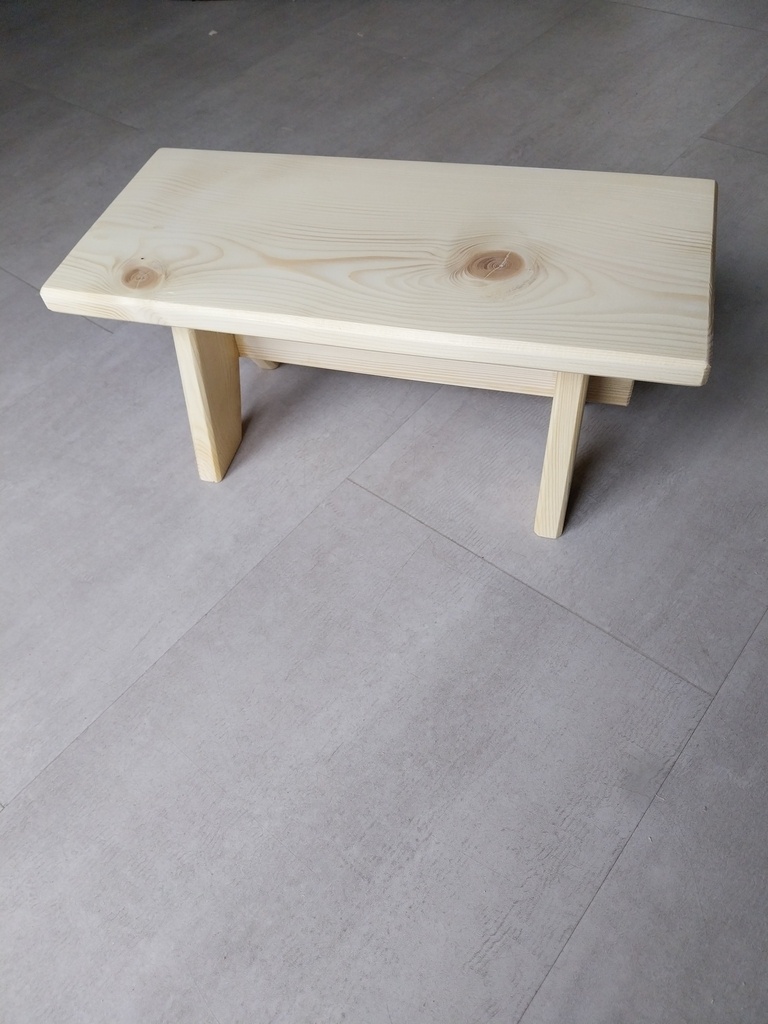 Quand j’ai fait mon premier repose pied, pour moi, ma femme s’est un peu moquée de moi. Ceci dit depuis ma maman, mon neveu et une amie m’en ont demandé un. Celui-ci est donc le quatrième. Quelques restes de sapin, des outils à main et un peu d’huile de coude.