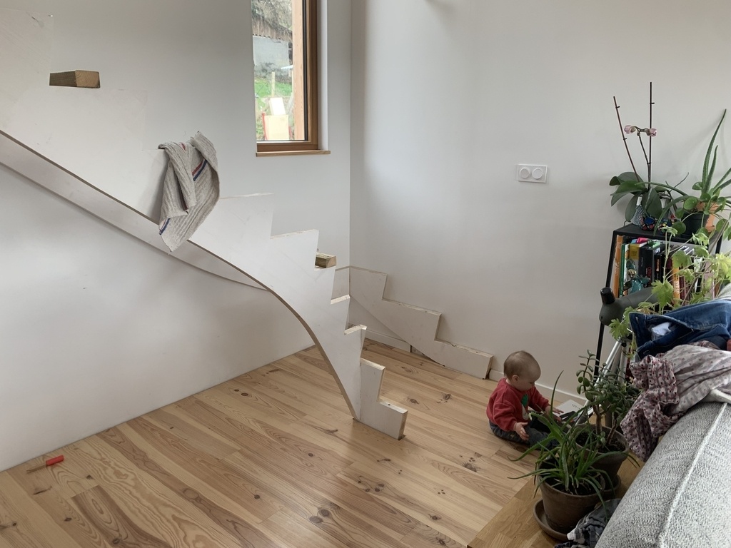 7) Assemblage in-situ des marches-contremarches du bas vers le haut
