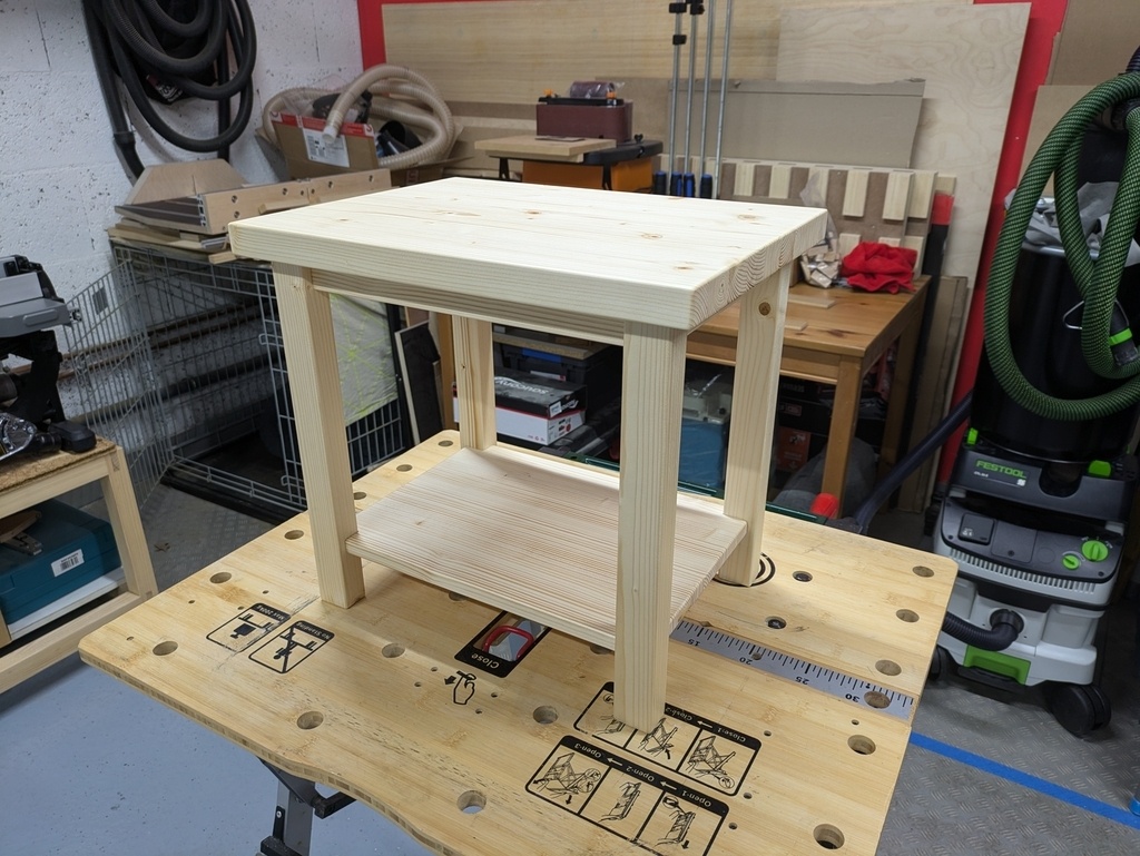 Depuis que mon petit dernier est passé au "lit de grand", j'avais prévu de lui faire une table de chevet. Étant donné que le temps passé à s'occuper des enfants est inversement proportionnel au temps passé dans l'atelier, et que s'occuper des enfants ça prend pas mal de temps, le projet est resté à l'état de projet, et son réveil est resté posé sur une valise de classement en métal pendant un bon moment... Jusqu'au jour où le réveil a basculé au milieu de la nuit en faisant un bruit d'enfer, ce que le petit n'a pas du tout apprécié