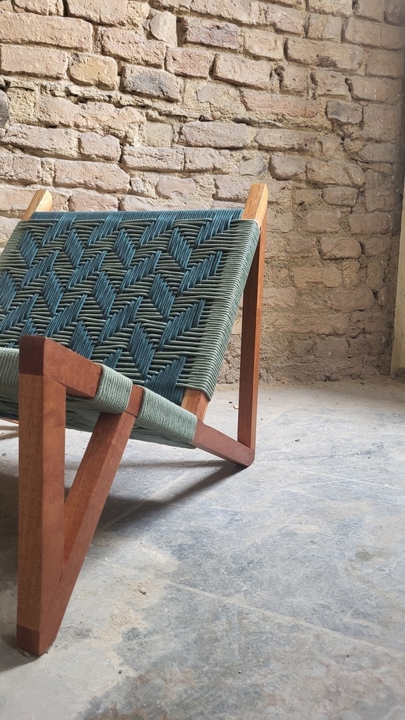 Pour le cordage, j ai délégué ça a ma conjointe, même si nous avons suivi tous les deux des cours en ligne sur Domestika pour comprendre comment faire (cours relativement bon au passage). Une grosse partie du travail se fait en amont et consiste a faire le patron, notamment à calculer le nombre de tours de cordes a faire sur les longueur et largeur, sans quoi il n est pas possible de suivre correctement des motifs geometriques.