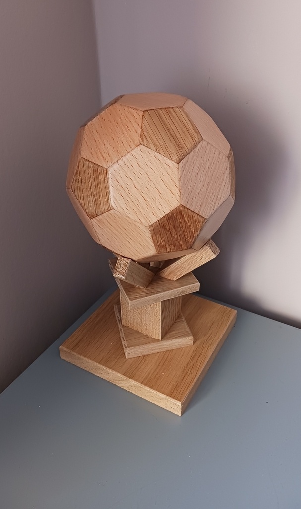 Création d'un ballon de foot avec son socle, réalisé entièrement à la main.