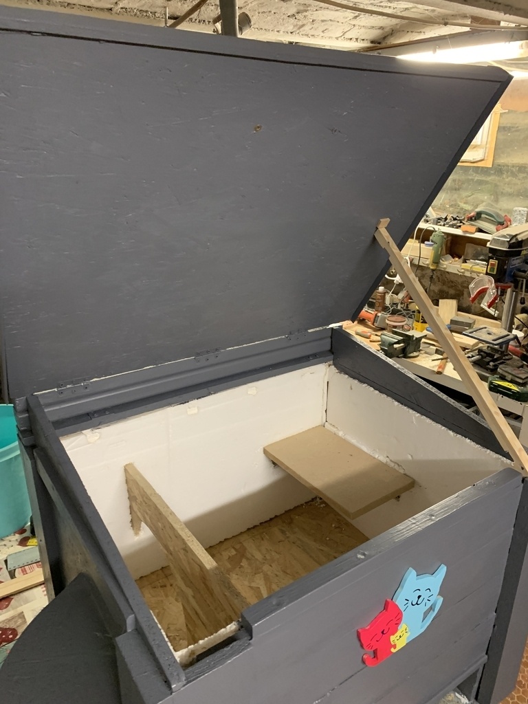 Petit abri d’hiver pour des chats errants, stérilisés et nourris mais qui n’ont malheureusement plus de foyer pour le moment.