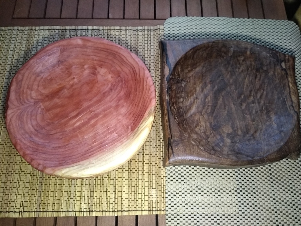 Pour l'assiette en cyprès, il y avait une petite fente , j'ai décidé de la garder et de faire un petit "papillon" , elle me sert de test comme ça et en fait je m'en sers tous les jours et aucun soucis.
