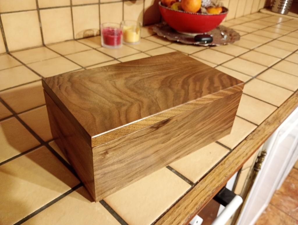 Coffret en platane , commande d un magicien pour mettre ses cartes etc...~~ La photo est assez nul mais je ne pensai pas publier..Platane issu de mes sciages.