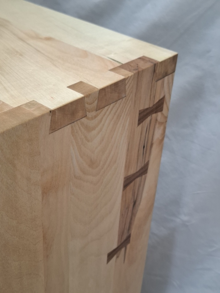 Très élégant, bravo. Je n’avais pas fait attention à l’assemblage des séparations avec les rainures en v avant de voir l’image des détails des tiroirs. Vraiment du beau travail.