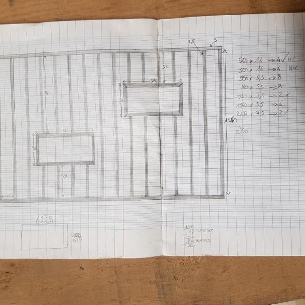 J'ai réalisé un claustra en chêne dans une cloison pour un pote, j'ai fait des erreurs de conception et c'est bourré de petits défauts (dont un petit "oups la perceuse a glissé sur un rail" visible à droite sur la photo) mais ça m'a permis de beaucoup beaucoup apprendre, sur l'achat de bois en scierie, sur comment régler mes machines de façon plus précise et plein d'autres trucs