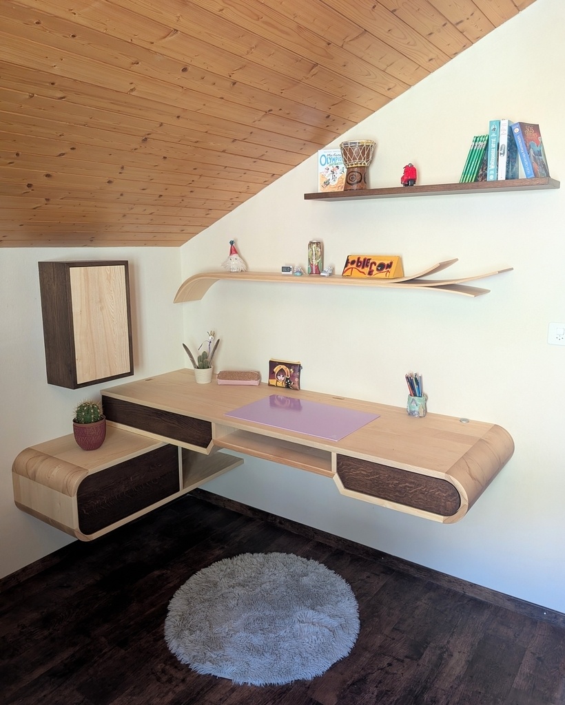 Wahou ! J’adore tout ! Les matières, les formes arrondies, les tiroirs encastrés, les assemblages, les finitions, tout en harmonie. Magnifique.