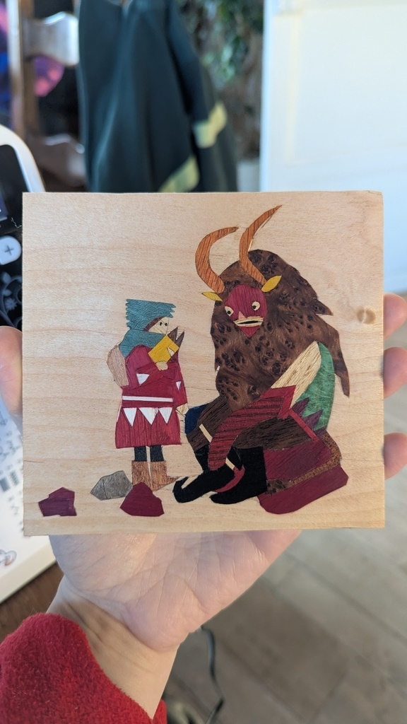 Belle découverte musicale merci ! La marqueterie est jolie j'aime bien le choix des bois par contre je trouve les formes un peu trop anguleuses tu as fait les decoupes au scalpel?