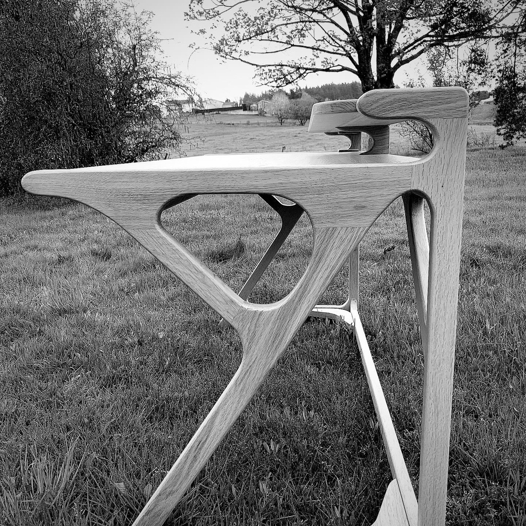 Ce n'est pas exactement le rendu que j'avais en tête en commençant ce projet. J'aurai aimé affiner les chants et creuser les parties arrondies pour donner du relief et de la légèreté au meuble. N'ayant que râpe et lime à ma disposition, je n'ai pas osé m'y lancé. Peut-être qu'une wastringue aurait pu faire l'affaire?!