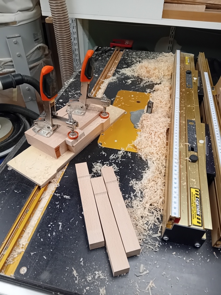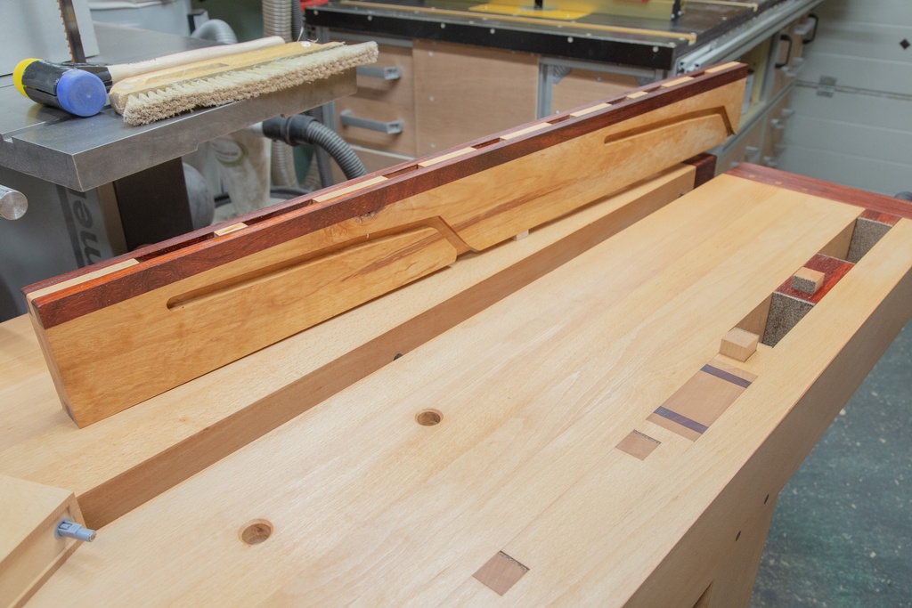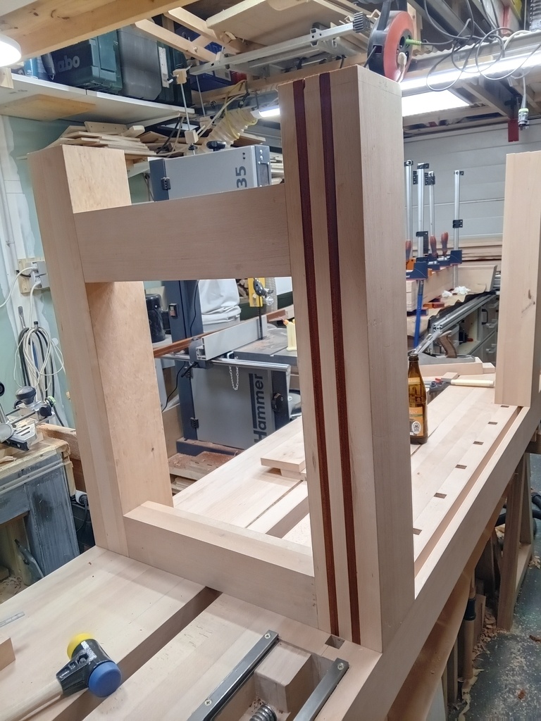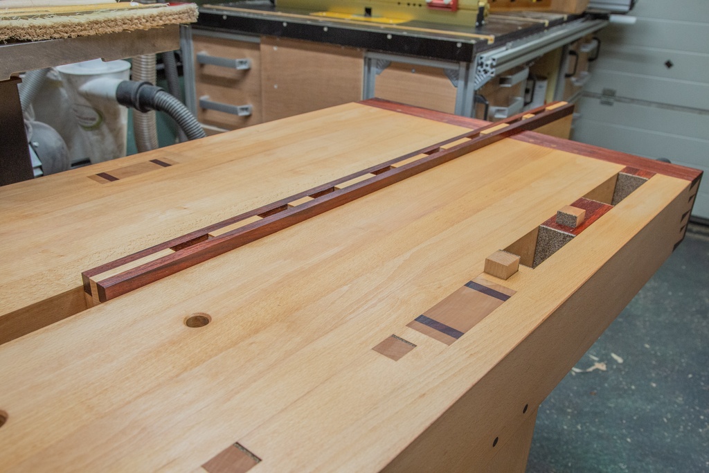 J'y intègre donc des éléments en padouk pour trancher avec la couleur du hêtre...